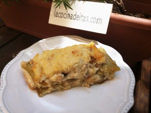 {«title»:»Musaka de pollo»,»people»:»4-5″,»time»:»»,»comment»:»»,»ingredients_sections»:[{«pos»:1,»name»:»»,»ingredients»:[{«pos»:1,»name»:»carne picada de pollo»,»quantity»:»500 gr.»},{«pos»:2,»name»:»tomates maduros grandes»,»quantity»:»2″},{«pos»:3,»name»:»berenjenas grandes»,»quantity»:»2″},{«pos»:4,»name»:»cebolla»,»quantity»:»1″},{«pos»:5,»name»:»ajo»,»quantity»:»3 dientes»},{«pos»:6,»name»:»aceite de oliva virgen exra»,»quantity»:»»},{«pos»:7,»name»:»queso rallado al gusto»,»quantity»:»»}]},{«pos»:2,»name»:»Para la bechamel»,»ingredients»:[{«pos»:1,»name»:»aceite de oliva virgen extra»,»quantity»:»50 gr.»},{«pos»:2,»name»:»harina de trigo»,»quantity»:»65 gr.»},{«pos»:3,»name»:»leche»,»quantity»:»500 ml.»},{«pos»:4,»name»:»sal»,»quantity»:»»},{«pos»:5,»name»:»pimienta»,»quantity»:»»},{«pos»:6,»name»:»nuez moscada»,»quantity»:»»}]}],»preparation_sections»:[{«pos»:1,»name»:»»,»steps»:[{«pos»:1,»step»:»Comenzamos lavando las berenjenas y cortándolas en rodajas, bien sea a lo largo o a lo ancho, como queramos. Cuando las tengamos todas cortadas las ponemos en un plato sobre un papel absorbente y les ponemos sal para que suden y eliminen el sabor amargo que suelen tener.»},{«pos»:2,»step»:»Por otro lado, pelamos y picamos la cebolla en trozos normales, pelamos y laminamos los ajos y salpimentamos bien el pollo. Echamos un chorretón de aceite de oliva en una sartén y la ponemos a fuego mínimo para ir dorando la cebolla, el ajo y un poco de sal.»},{«pos»:3,»step»:»Cuando la cebolla esté ligeramente pochada añadimos los tomates rallados, dejando la mezcla durante unos 15 minutos removiendo de vez en cuando.»},{«pos»:4,»step»:»Cuando se haya consumido parte del agua de los tomates incorporaremos la carne picada de pollo y continuamos haciéndola durante unos 5 o 6 minutos removiendo poco a poco.»},{«pos»:5,»step»:»En otra sartén echamos un poco de aceite de oliva y pasamos las rodajas de las berenjenas por las dos caras hasta que se doren un poco y se ablanden. Las reservamos en un plato sobre un papel absorbente para que recoja el exceso de aceite.»},{«pos»:6,»step»:»Precalentamos el horno a 180 grados y es el momento de preparar la musaka.»},{«pos»:7,»step»:»Utilizaremos una bandeja honda y colocaremos una capa de rodajas de berenjena para cubrir todo el fondo, añadiremos la mitad de la carne de pollo y una capa de bechamel.»},{«pos»:8,»step»:»Repetiremos de nuevo, poniendo el resto de las rodajas berenjena, el resto de la carne y el resto de la bechamel y sobre esta última capa echaremos unos generosos puñados de queso rallado. Lo meteremos en el horno y lo dejaremos durante 30 minutos y estará lista para servir.»}]},{«pos»:2,»name»:»Bechamel»,»steps»:[{«pos»:1,»step»:»En un cazo a fuego medio-bajo, calentamos el aceite y agregamos la harina y lo removemos con unas varillas, hasta que esté completamente integrada. Sin parar de remover, dejamos que se cueza durante 1 minuto para que no sepa a crudo.»},{«pos»:2,»step»:»Calentamos la leche justo hasta antes de que hierva, y la tenemos preparada.»},{«pos»:3,»step»:»Dejamos enfriar un minuto y vertemos la leche caliente de una vez, que es el truco para que no salgan grumos, y continuamos removiéndolo con las varillas, durante 5 minutos, hasta que la salsa empiece a espesar.»},{«pos»:4,»step»:»Cuando tenga la textura que queramos, lo retiramos del fuego y lo ponemos a punto de sal y pimienta, y le añadimos un poco de nuez moscada.»}]}]}