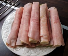- Una vez cocidos los puerros cocidos, escurrir lo mejor que podamos para que no suelten agua durante el gratinado. Enrollar cada trozo de puerro en una loncha de jamón cocido y en una loncha de queso.